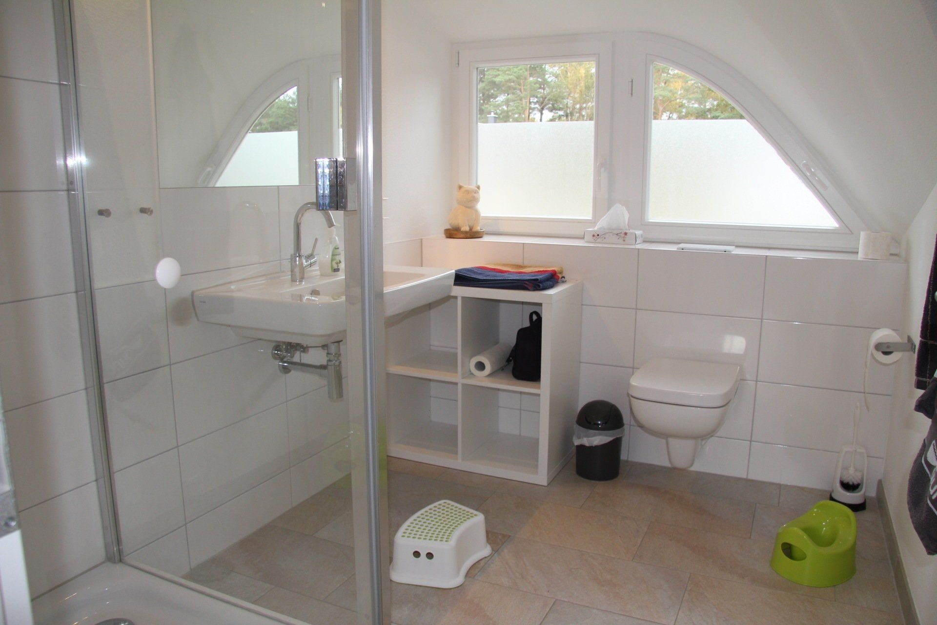 mit Dusche. Separates WC. Abstellraum mit Waschmaschine und Trockner. 1. Etage: