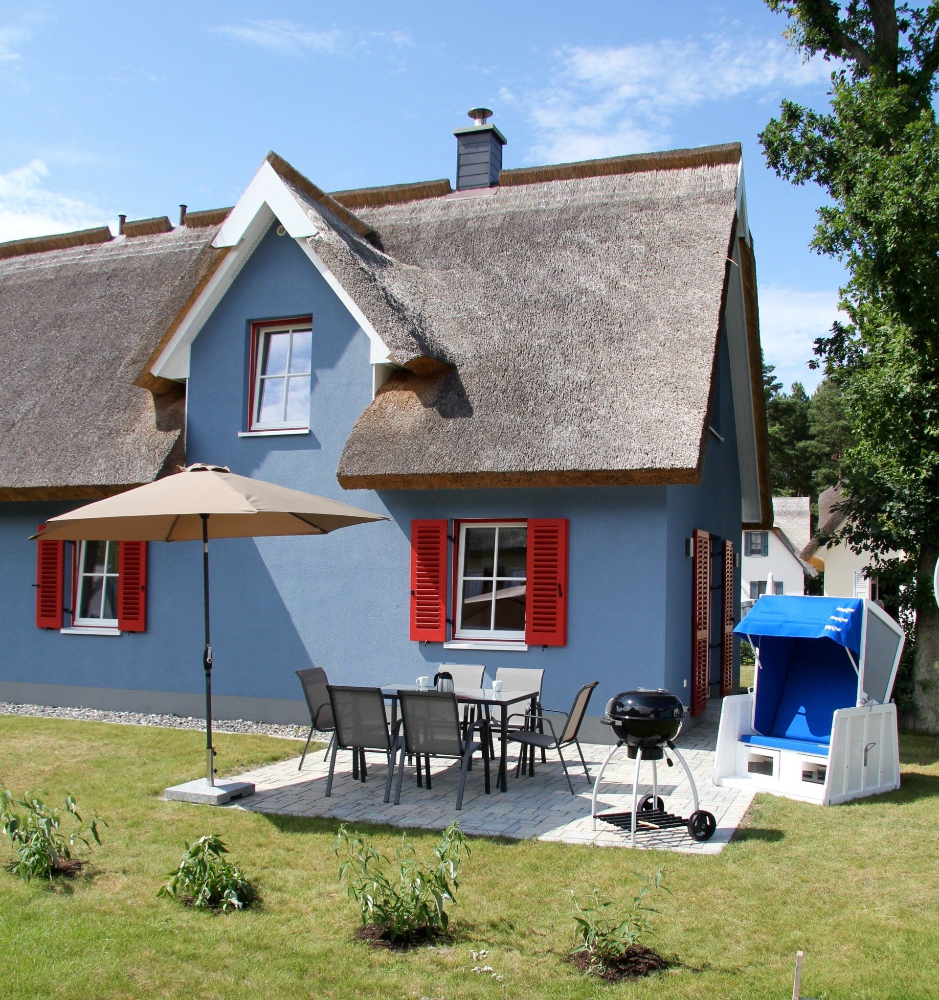 Komfortable Reetdachhaushälfte mit Sauna und Kaminofen,
